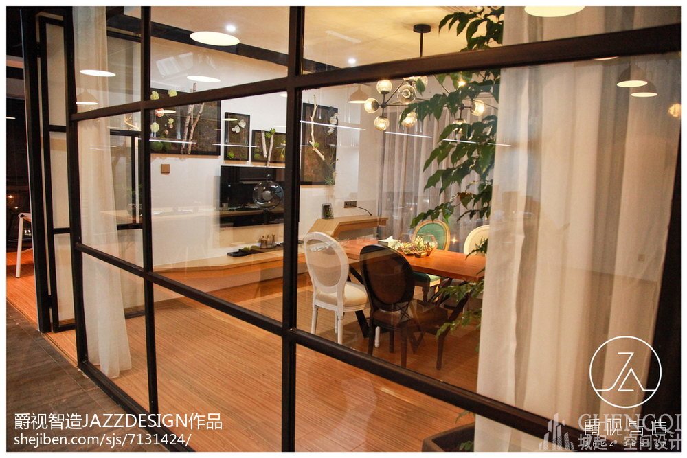 我們?cè)谌肟谔幨褂昧髓F件方管與木框結(jié)合的設(shè)計(jì),滿足陳列功能的同時(shí)體現(xiàn)了很好的視覺效果,設(shè)計(jì)之初還想通過藤蔓植物自然生長(zhǎng)的方式讓它更加充滿生機(jī)和綠色,同時(shí)它起到一個(gè)半鏤空的隔斷作用。本案家具統(tǒng)一通過淘寶購買,在滿足設(shè)計(jì)風(fēng)格搭配的前提下大量的節(jié)約了資金,使得230平方的項(xiàng)目?jī)H僅用了17萬就包含了全部輔材、主材、家具、燈具,業(yè)主拎包入駐。