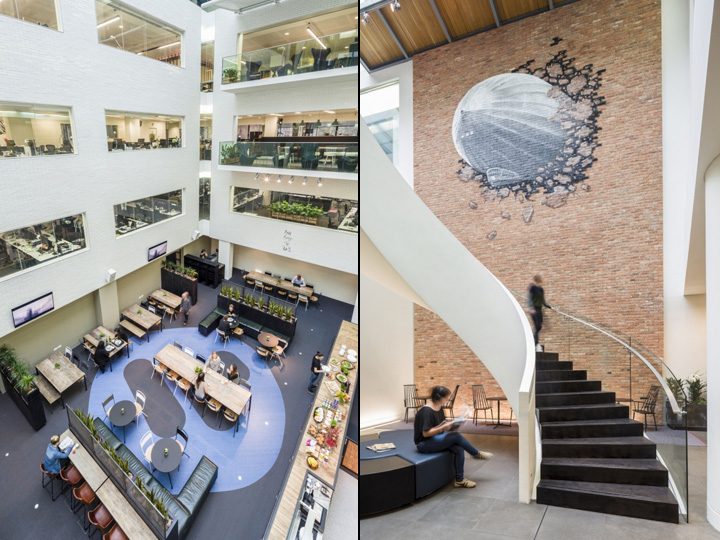秉承“手工藝人和音樂鑒賞家”的公司文化風(fēng)格,設(shè)計師將重點放在突出真實準(zhǔn)確這一特性上,人們可以從那人字形地磚、回收木材定制而成的大門、以及巧妙的磚砌造型上看出他們的嚴(yán)格謹(jǐn)慎和一絲不茍。設(shè)計師和建筑師通力協(xié)作,在改進功能、保質(zhì)保量完成項目的同時,盡可能的避免一切不必要的開支。這間新辦公室不僅鼓舞人心,而且為公司的快速增加和促進員工之間的溝通,起到了相當(dāng)重要的作用。