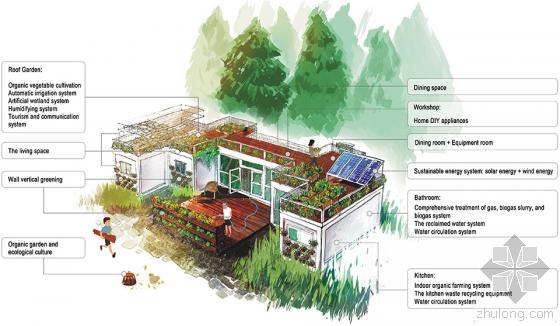 該生菜屋項目必須滿足建造時間短、可回收、面積利用率高這些條件,因此我們采用了集裝箱模塊房作為原材料,它是利用集裝箱本身特性由工廠制定出箱體結(jié)構(gòu)、門窗、屋頂、地板、墻面等系數(shù)自行預制生產(chǎn)。集裝箱模塊房現(xiàn)已形成完善的生產(chǎn)施工模式,因此前期預置和現(xiàn)場施工都由廠家配合完成。在廠家生產(chǎn)好的預制模塊房運到場地后進行吊裝,每個單體集裝箱模塊房大概需要半小時時間,集裝箱模塊房之間的對接處進行防水橡膠安裝,最后進行樓梯和室內(nèi)門的安裝。隨后,業(yè)主親自完成了能耗配套設(shè)備以及綠色種植的安裝。六個集裝箱模塊基礎(chǔ)價18萬元,改裝、運輸和安裝費是3.8萬元,共計21.8萬元。